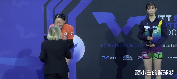领奖时张本美和笑的非常开心,而一旁等待的早田有些一脸不耐烦。