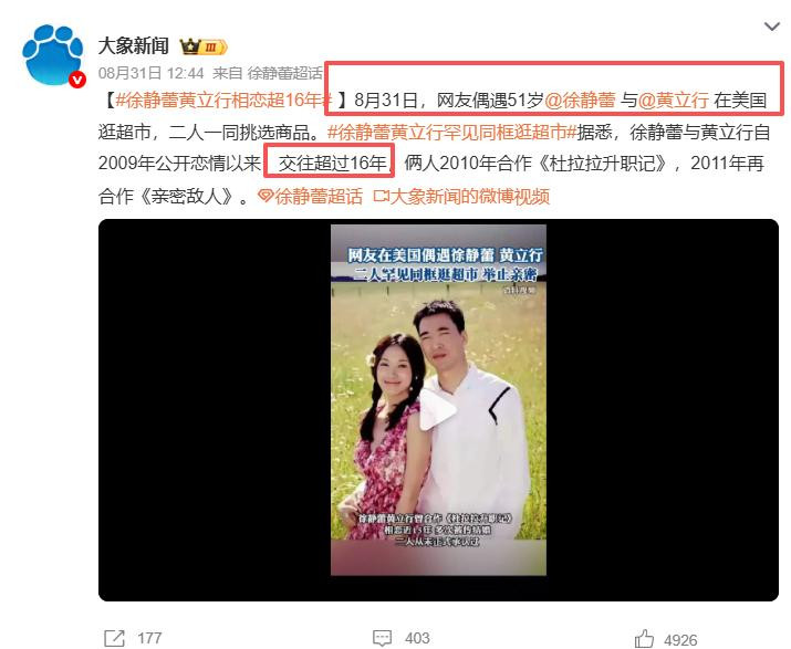 没错,就在8月底的时候,徐静蕾被拍到和黄立行在超市购物的照片了。