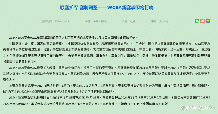 值得一提的是上个赛季的WCBA联赛时间为2024年11月15日-2025年4月16日。常规赛+季后赛时间只有152天,其中还包括全明星周末的窗口期。